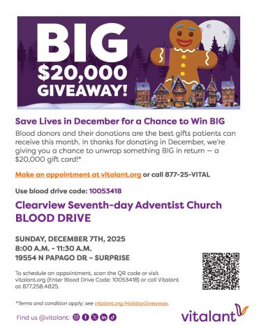Welcome to the Clearview Seventh Day Adventist Church in Surprise, Arizona. We are a Christian community and would love to have you join our family. To learn more about what we believe you can visit our "About Us" page. Please join us for Bible study, worship, and prayer.